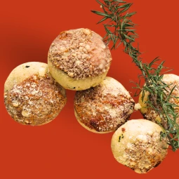 All the flavours of a Margherita pizza in one biscuit: tomato, herbs, mozzarella and a touch of garlic baked into a soft savoury bite.